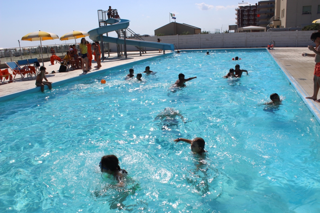 Cesenatico ospita l’Ostello sul Mare, una struttura unica che unisce al suo interno sicurezza, comfort e spazi. Situato direttamente su 500 metri di spiaggia privata, offre ambienti ampi e versatili, ideali per ogni tipo di esperienza formativa e ricreativa. Tra gli spazi disponibili troviamo: ampi porticati, una sala ristorante con vista sulla spiaggia, aule per attività didattiche e laboratori, un arenile con chiringuito, campi da beach volley e base nautica per le attività di vela e paddle, tre piscine con scivoli di differenti altezze adatte a ogni fascia di età e campi da basket. Nell’ampio parco antistante la struttura, si trova un campo da calcio a 5, spazi verdi per l’attività all’aperto, tavoli da ping-pong e pista ciclabile. La sistemazione è prevista in ampie e luminose camere da più posti letto suddivisi in isole da quattro ciascuno, con servizi condivisi sul piano.